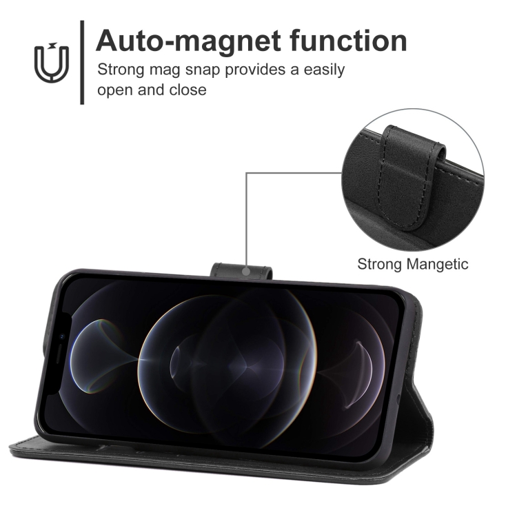 Funda Telefónica de Cuero para iPhone 12 Pro (Negro)