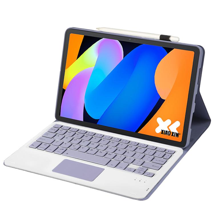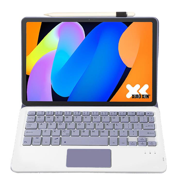 Funda ultrafina de cuero con teclado Bluetooth desmontable y panel táctil para Lenovo Xiaoxin Pad 11" 2025 AM31-A (blanco lavanda)