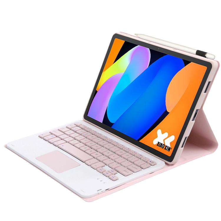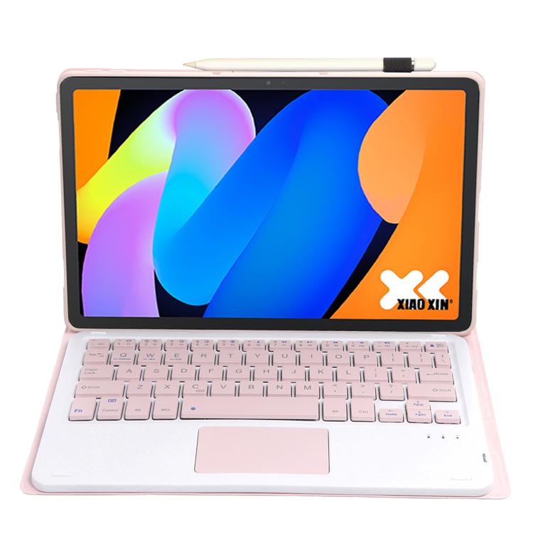 Funda ultrafina de cuero con teclado Bluetooth desmontable y panel táctil para Lenovo Xiaoxin Pad de 11 pulgadas (2025 AM31-A) (rosa y blanco)