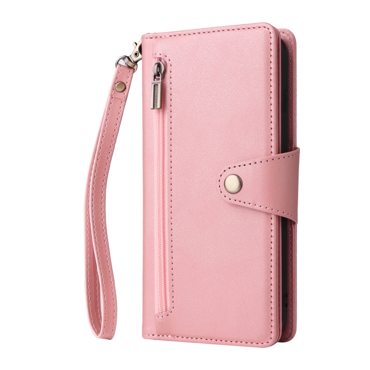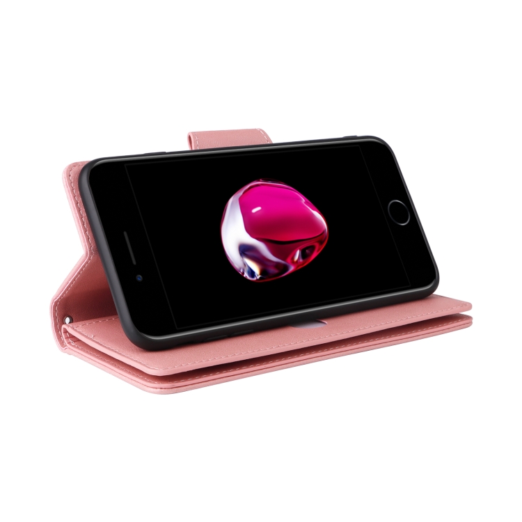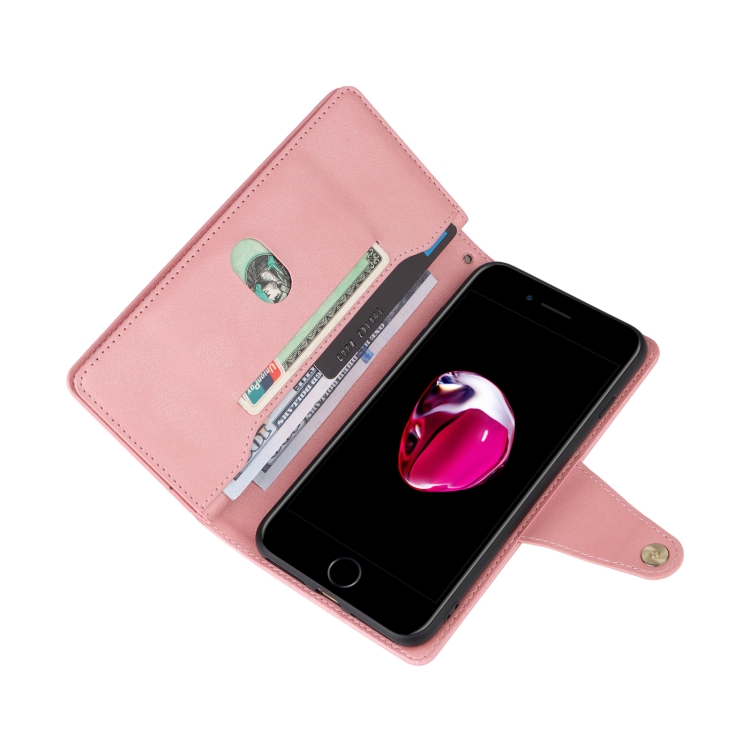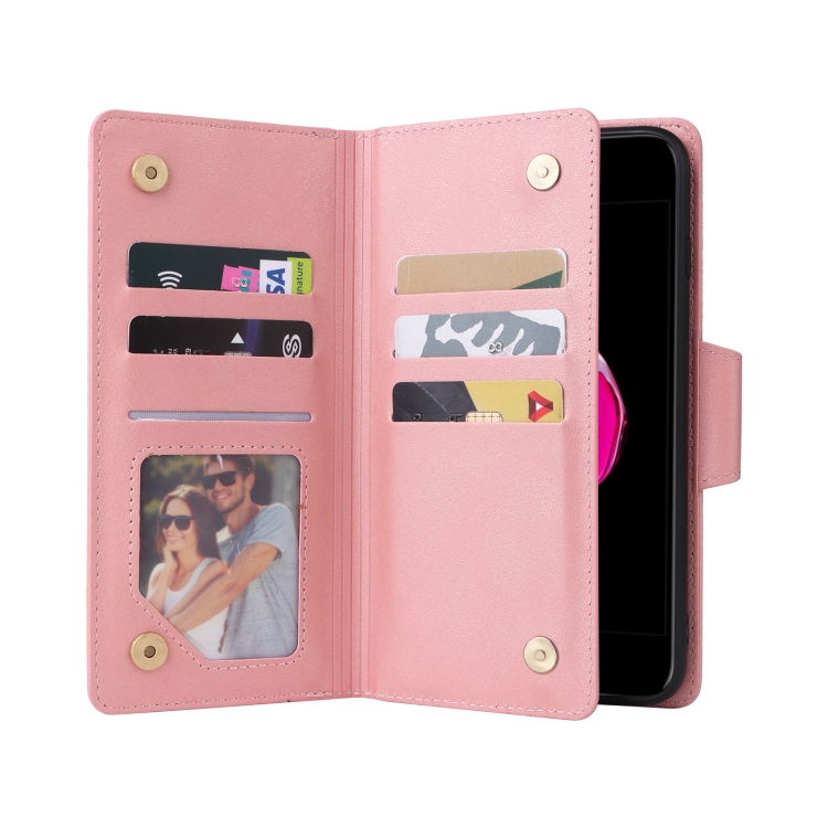 Hebilla de Remojo Case de Teléfono Cuero Tres Pliegues 9 Tarjetas para iPhone 7 Plus/8 Plus (Oro Rosa)