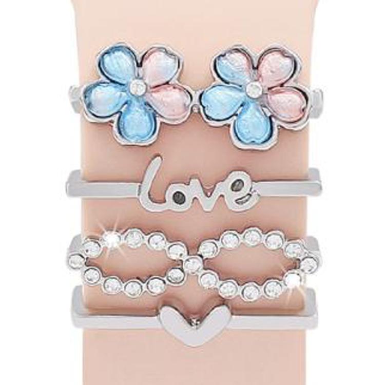 Juego de 4 correas de silicona universales para reloj inteligente, anillos decorativos de metal (flor plateada)