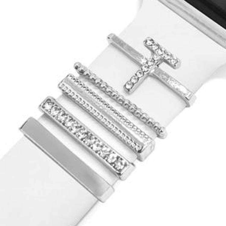 Juego de 5 anillos decorativos de metal con letras para reloj inteligente, estilo T