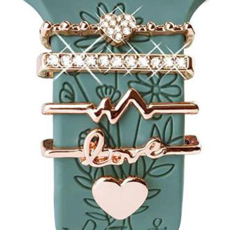Juego de 5 correas de silicona universales para reloj inteligente, anillo decorativo de metal, estilo: dorado 7