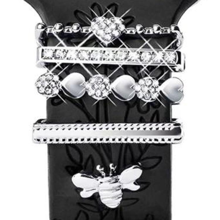 Juego de 5 correas de silicona universales para reloj inteligente, anillo decorativo de metal, estilo: plateado 2