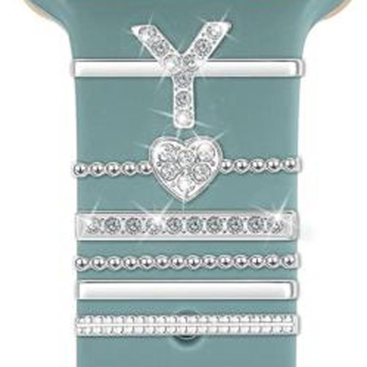 Juego de 6 correas de silicona universales para reloj inteligente, accesorios de metal decorativos, talla Y (plateadas)