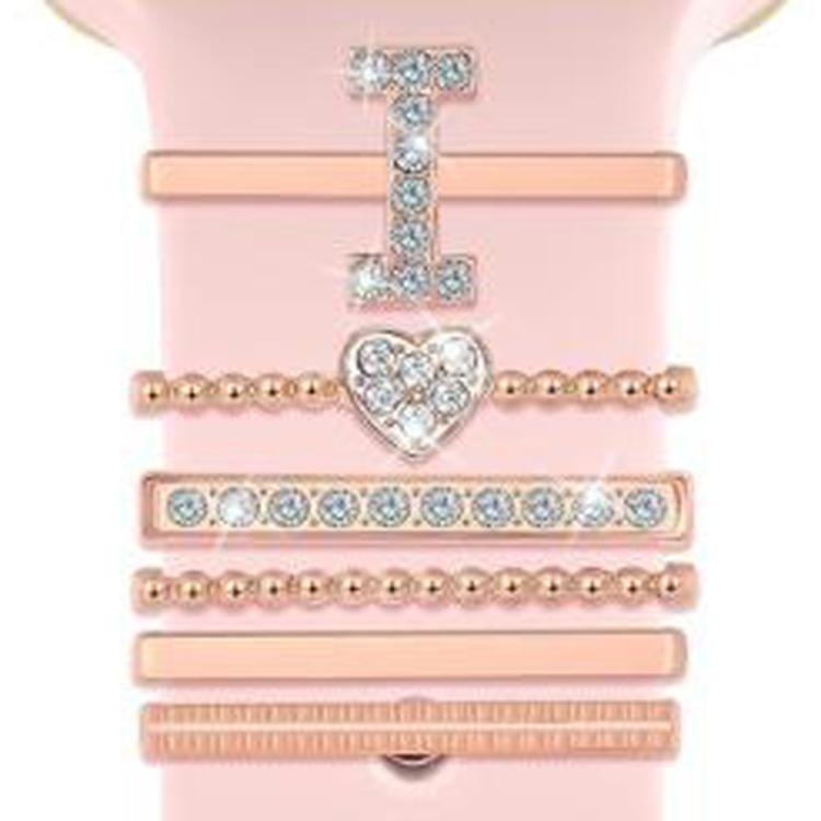 Juego de 6 correas de silicona universales para reloj inteligente, anillos decorativos de metal, talla I (oro rosa)