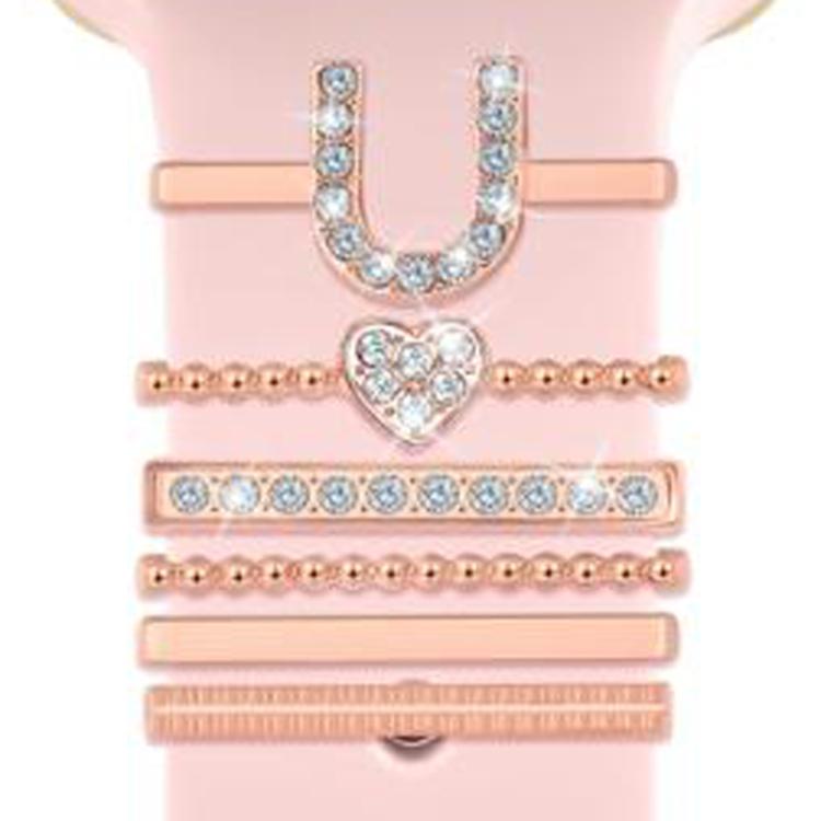 Juego de 6 correas de silicona universales para reloj inteligente, anillos decorativos de metal, talla U (oro rosa)