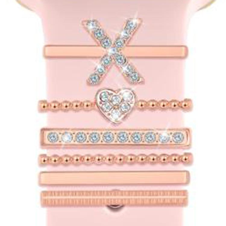Juego de 6 correas de silicona universales para reloj inteligente, anillos decorativos de metal, talla X (oro rosa)