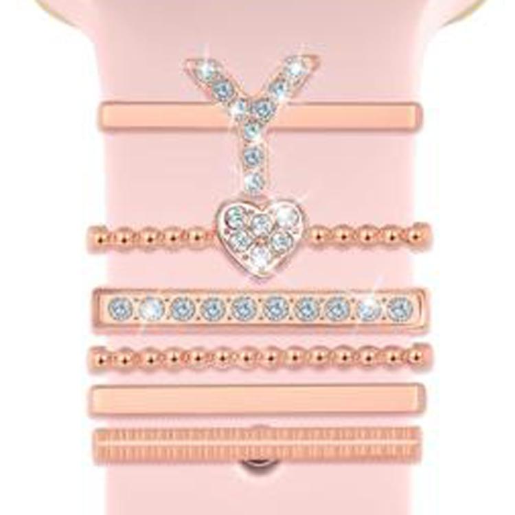 Juego de 6 correas de silicona universales para reloj inteligente, anillos decorativos de metal, talla Y (oro rosa)