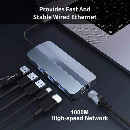 - 1x Adaptador Estación de Acoplamiento Junsunmay 6 en 1 Tipo-C a 4K HDMI y 1000M RJ45 Ethernet