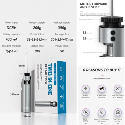 • 1x Máquina Eléctrica para Eliminar Pegamento OCA 2 en 1 TBK 002 con Enchufe UE