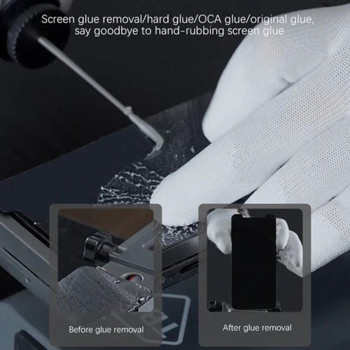 • Eliminación rápida y precisa de pegamento OCA, pegamento duro y Adhesivo Original