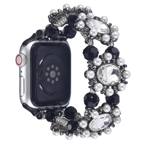 Correa para Apple Watch Series 4 con Pulsera de Piedras Preciosas y Perlas 44mm (Negro)