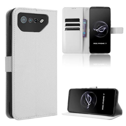 Funda para Asus Rog Phone 7 de Cuero con Textura de Diamante (Blanco)