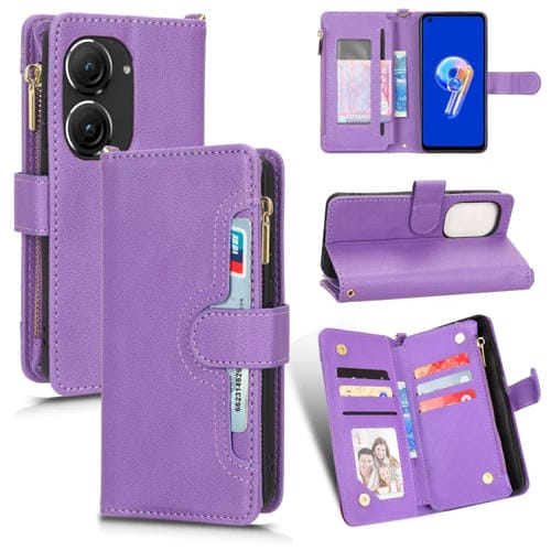 Funda de Cuero con Cremallera para Asus Zenfone 10 y 9 Litchi Texture (Púrpura)