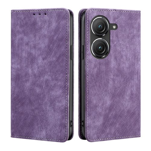 Funda de Cuero Magnética para Asus Zenfone 9 con Protección RFID y Cepillo Antirrobo (Púrpura)