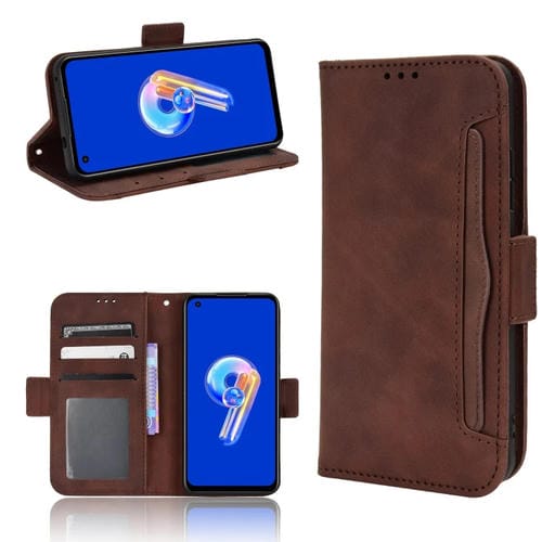 Funda de Cuero para Asus Zenfone 9 con Textura Becerro y Ranuras para Tarjetas (Marrón)