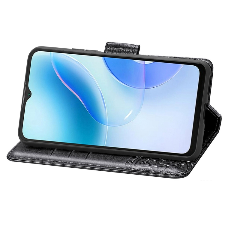 Estuche para BlackView A53 Butterfly Love Flower de Cuero en Relieve (Negro)