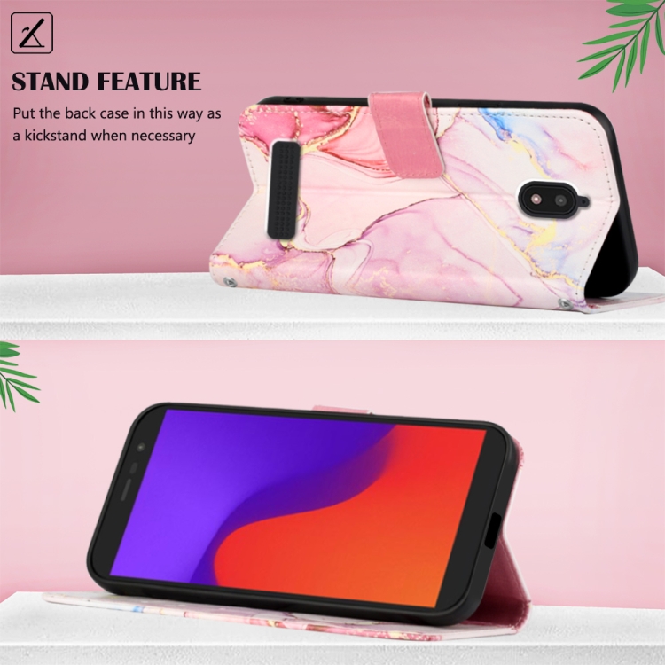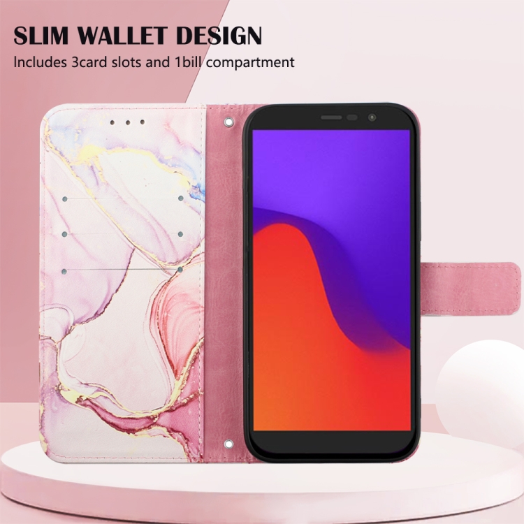 Funda para Blu View 2 (2020/2022) Pt003 con Tapa de Cuero y Diseño Mármol (Oro Rosa)