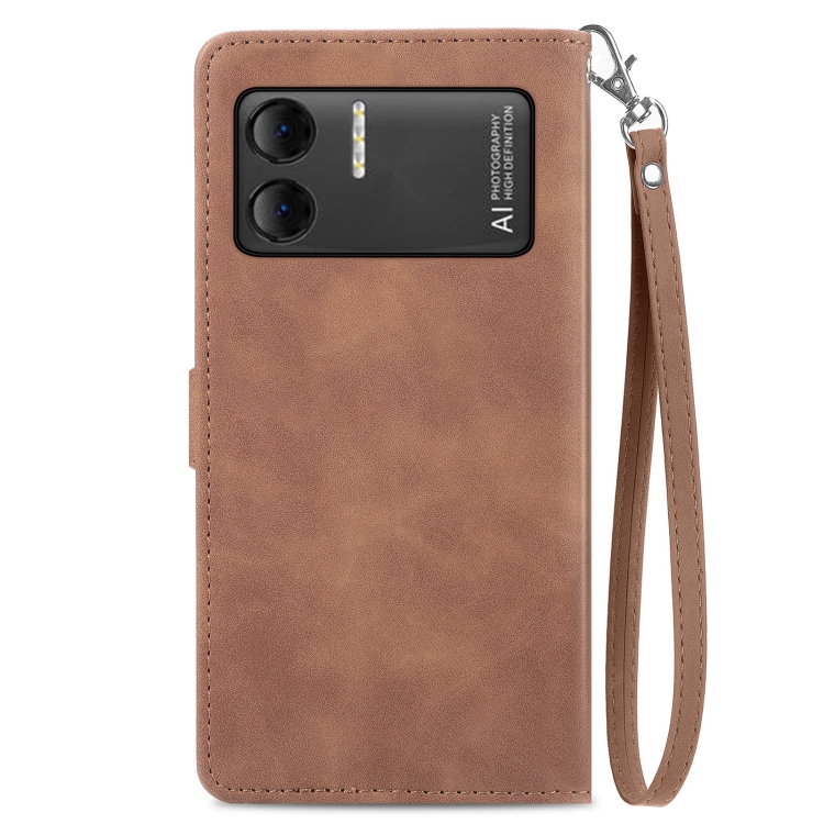 Estuche para Teléfono Doogee X98 Pro y X98 de Cuero con Cremallera y Flor en Relieve (Marrón)