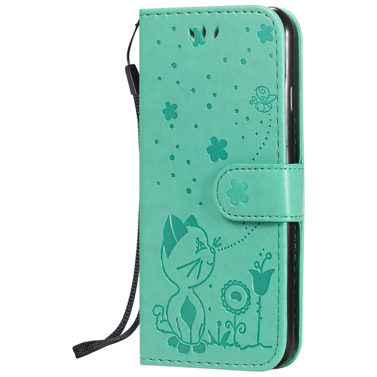 Funda de Cuero iPhone 6 Modelo Gato Abeja En Relieve a Prueba de Golpes Horizontal con Sostenedor y Ranuras para Tarjetas y Monedero (Verde)