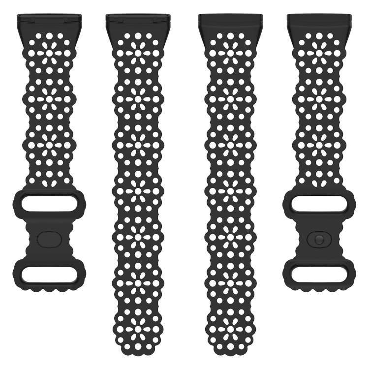 Correa de Silicona para Fitbit Versa 4 / 3 / Sense 1 / 2 Ahuecada con Encaje (Negro)