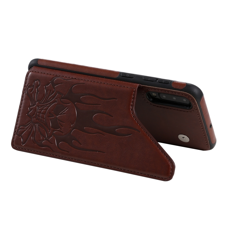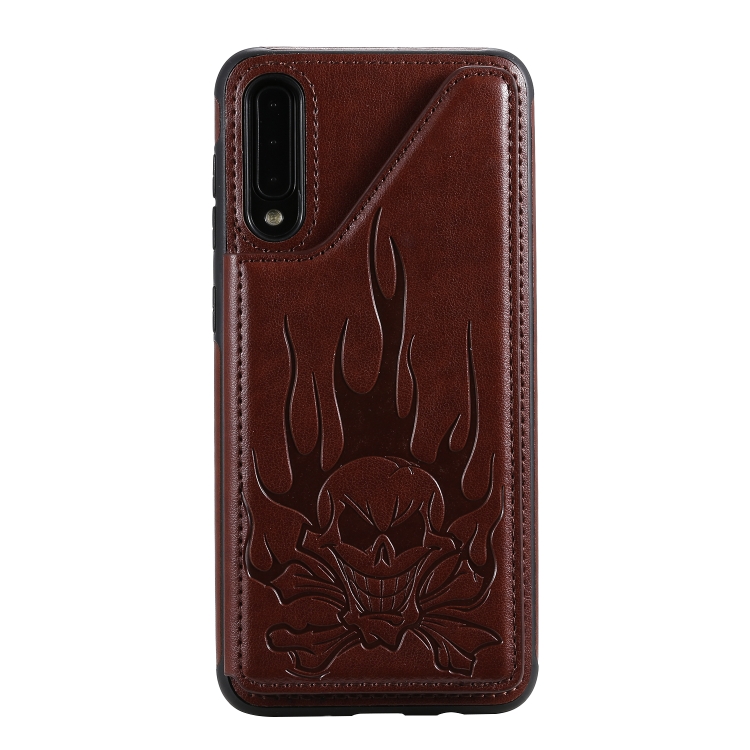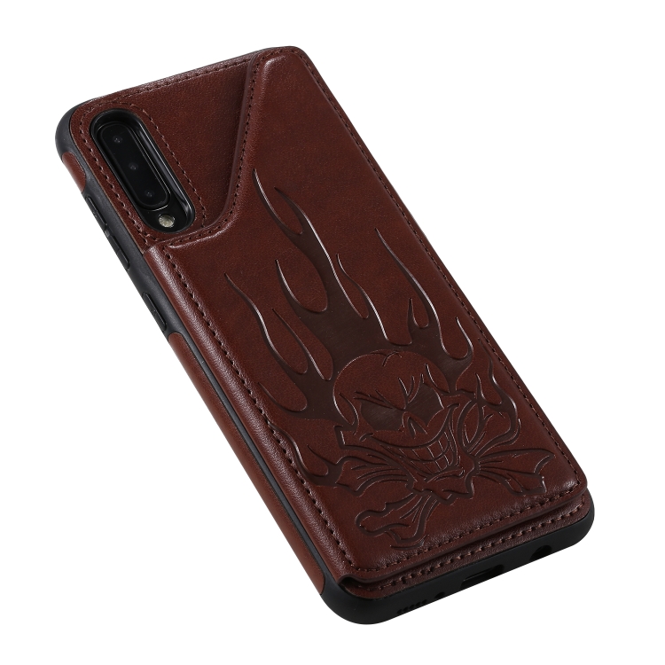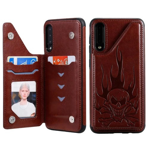 Estuche Protector Galaxy A50 Skull Head a Prueba de Golpes con Soporte y Billetera (Marrón)