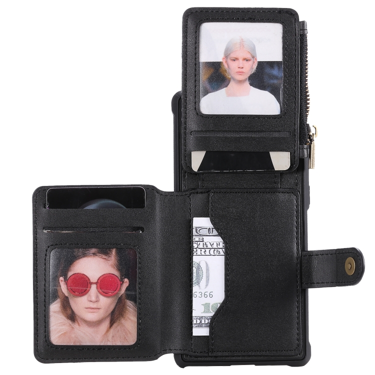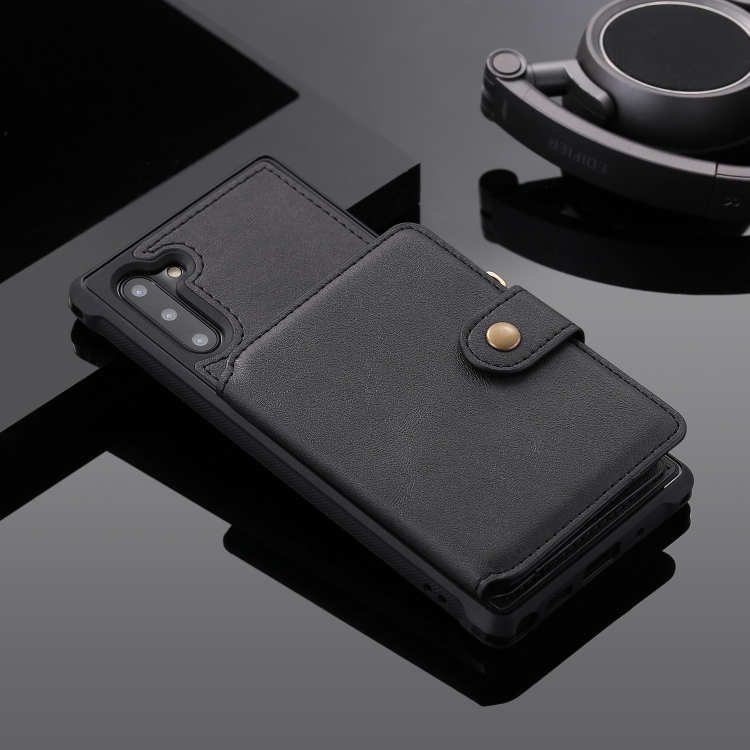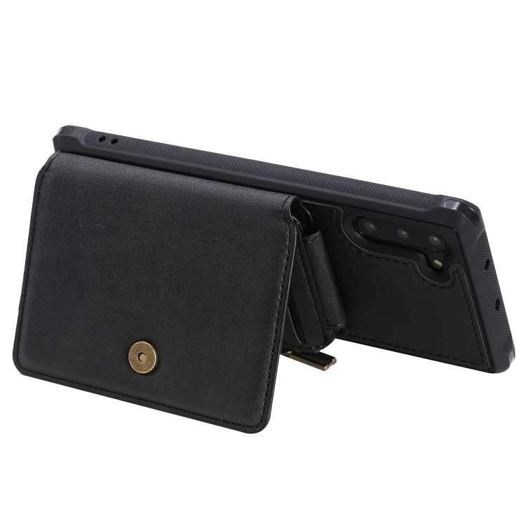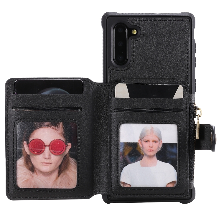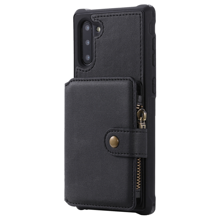 Estuche Protector Galaxy Note 10 a Prueba de Golpes con Cremallera Ranuras Tarjetas Soporte Fotos Billetera (Negro)
