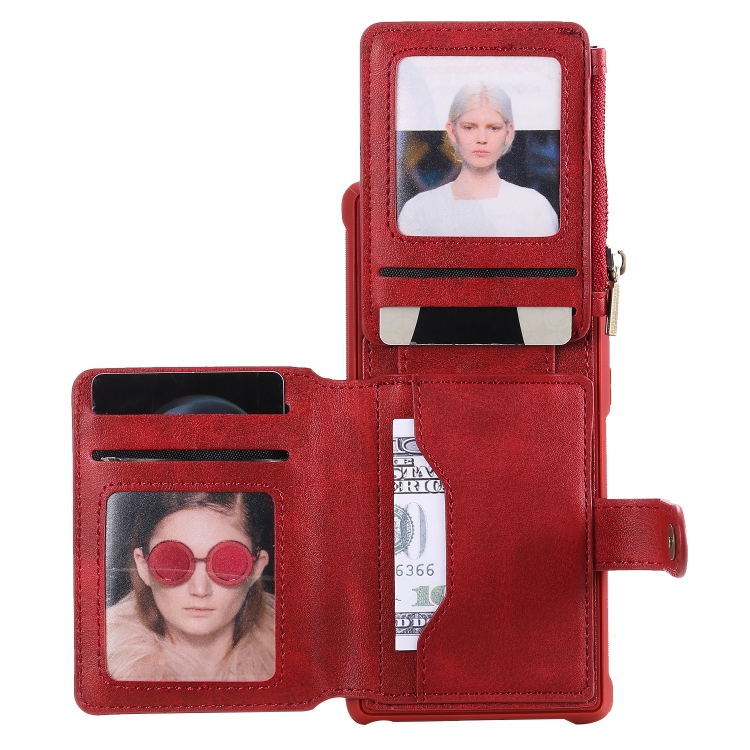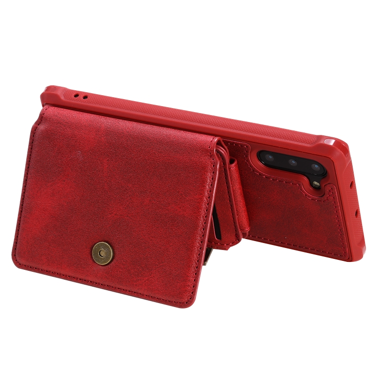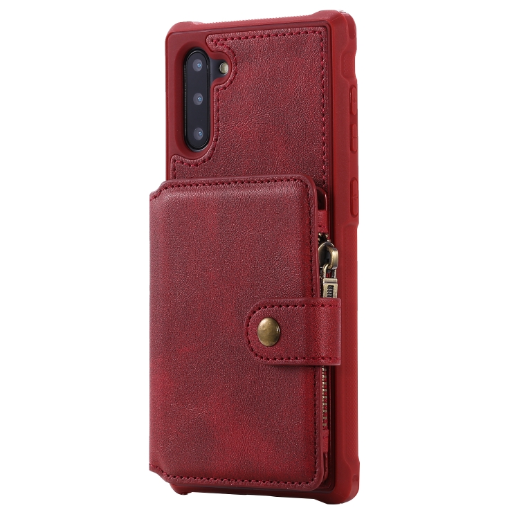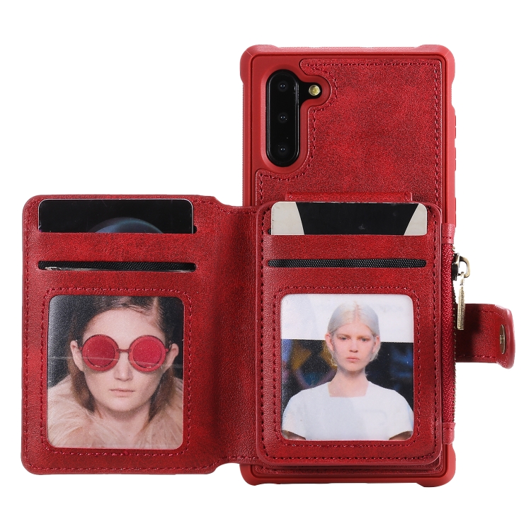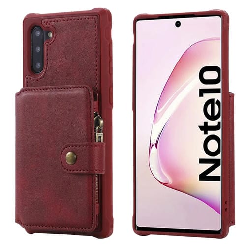 Estuche Protector Galaxy Note 10 a Prueba de Golpes con Cremallera Ranuras Tarjetas Soporte Fotos Billetera (Rojo)