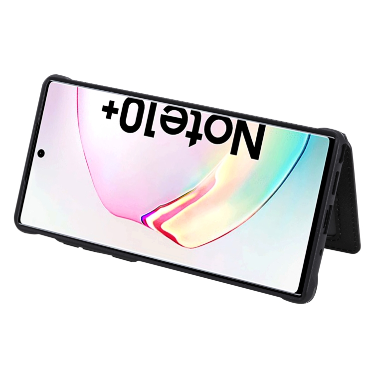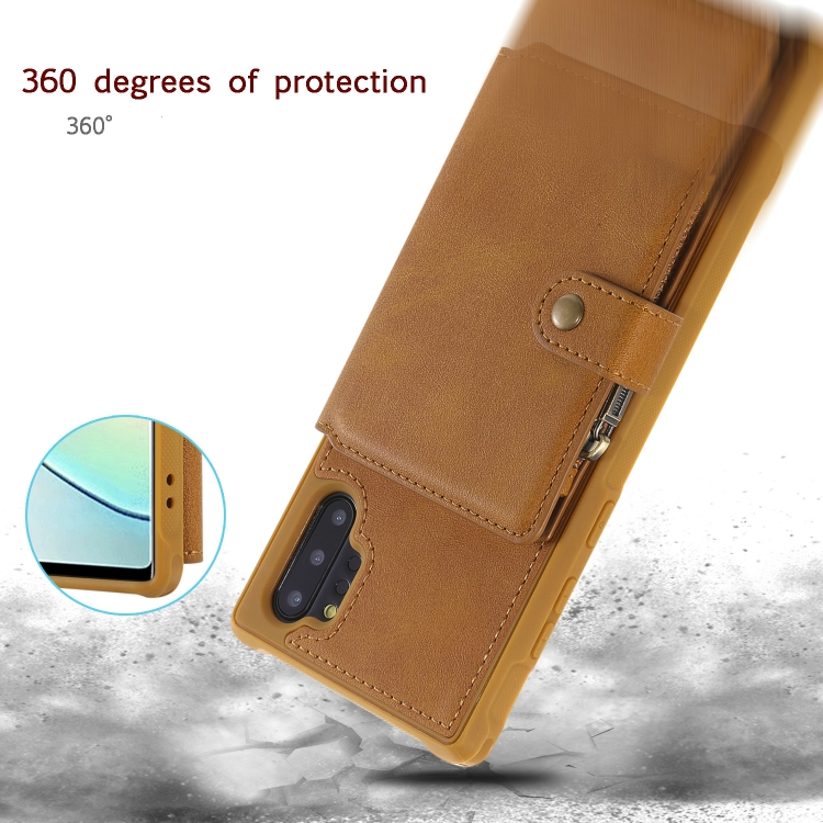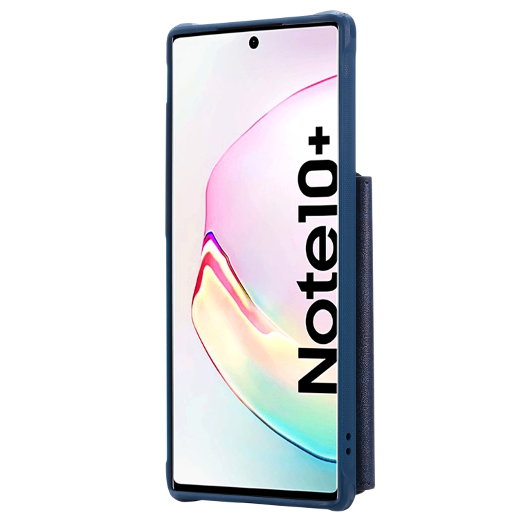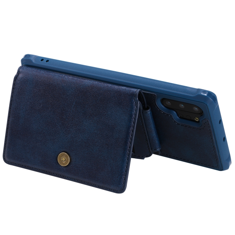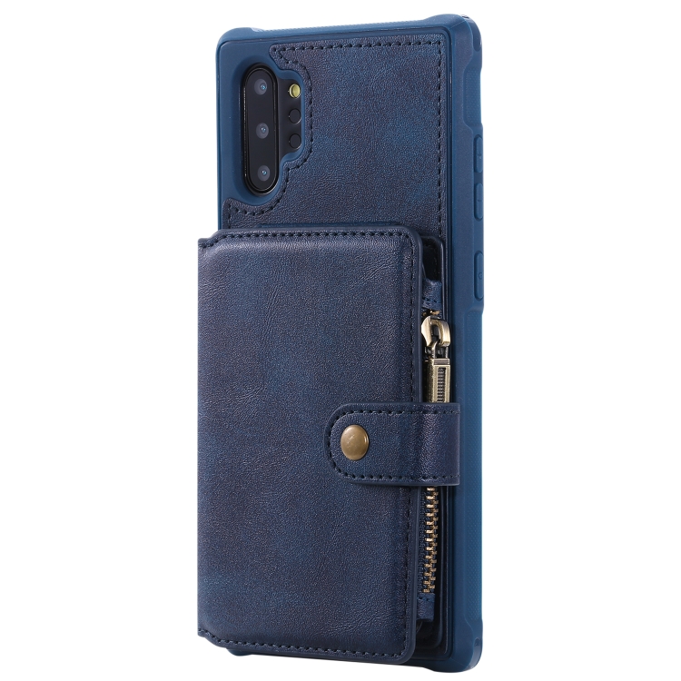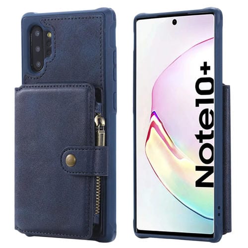 Estuche Protector Galaxy Note 10 Plus con Cremallera Hebilla Soporte Ranuras Tarjetas Billetera Cordón Marcos Fotos (Azul)