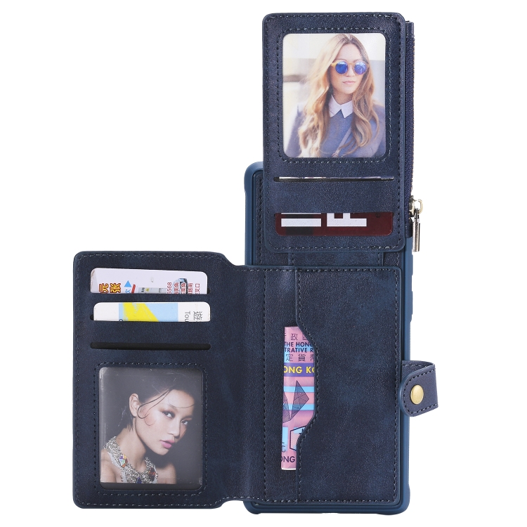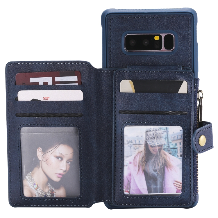 Estuche Protector Galaxy Note 8 a Prueba de Golpes con Cremallera Ranuras para Tarjetas Soporte Fotos Billetera (Azul)