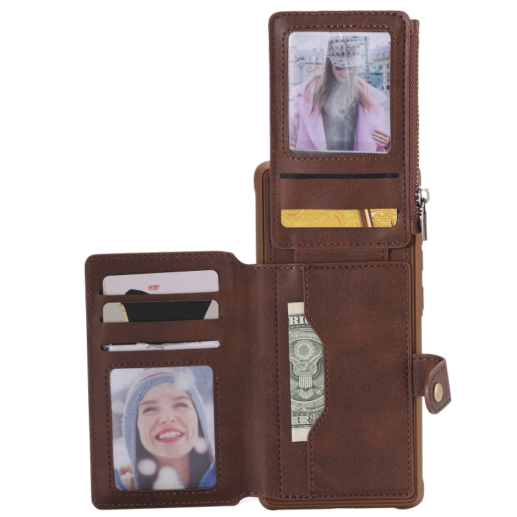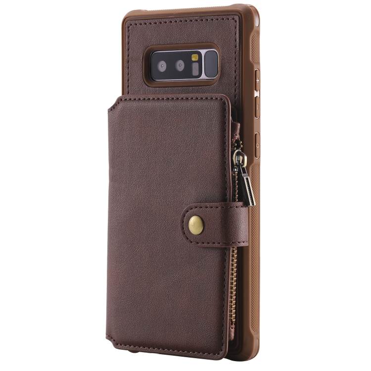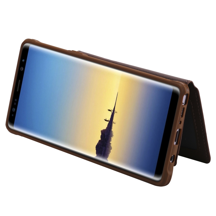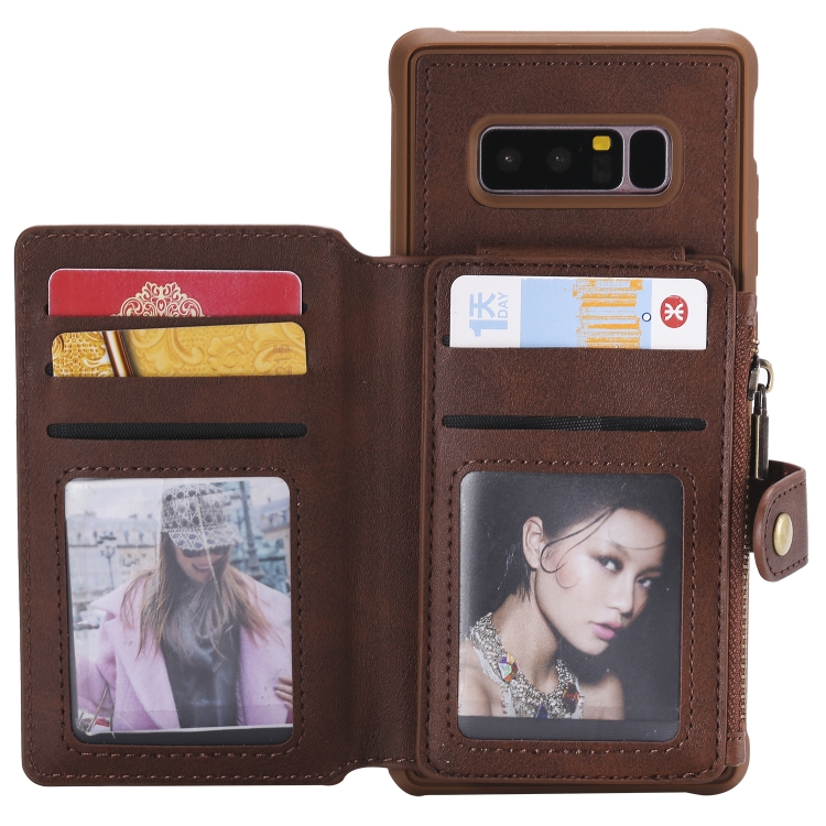 Estuche Protector Galaxy Note 8 con Cremallera Ranuras Tarjetas Soporte Fotos Billetera (Café)
