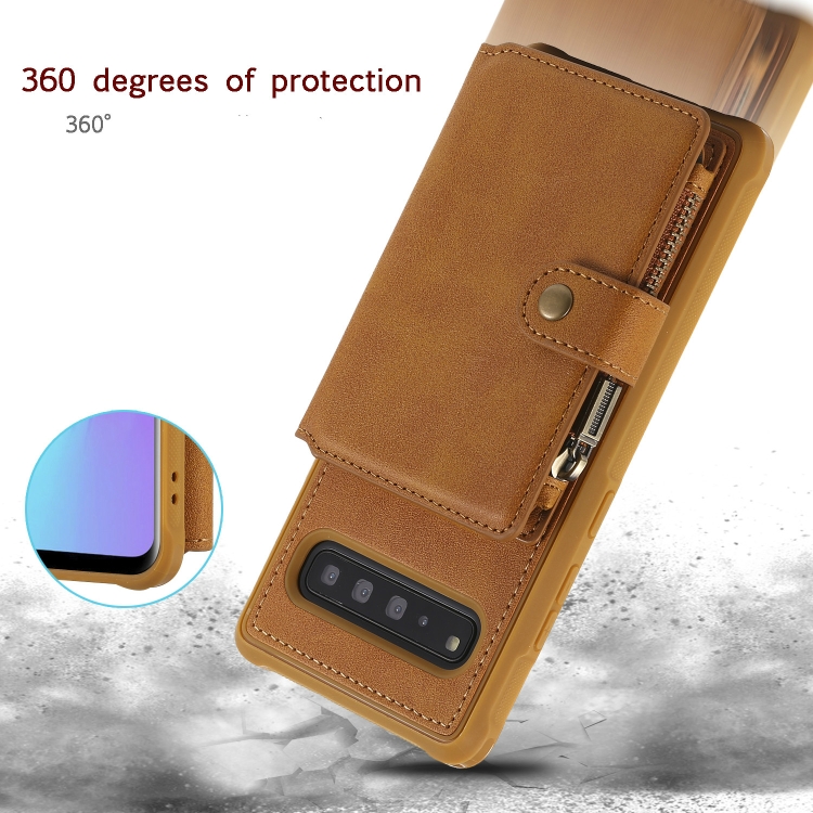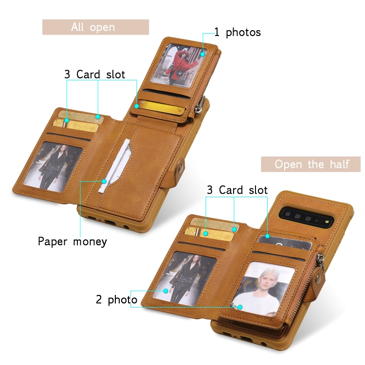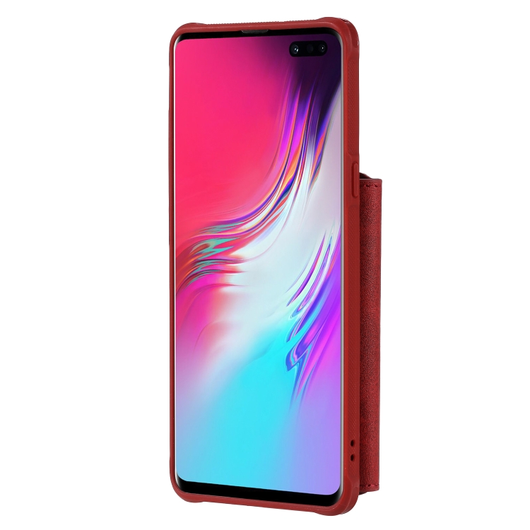 Estuche Protector Galaxy S10 5G con Cremallera Hebilla Soporte Ranuras Tarjetas Billetera Cordón Marcos Fotos (Rojo)