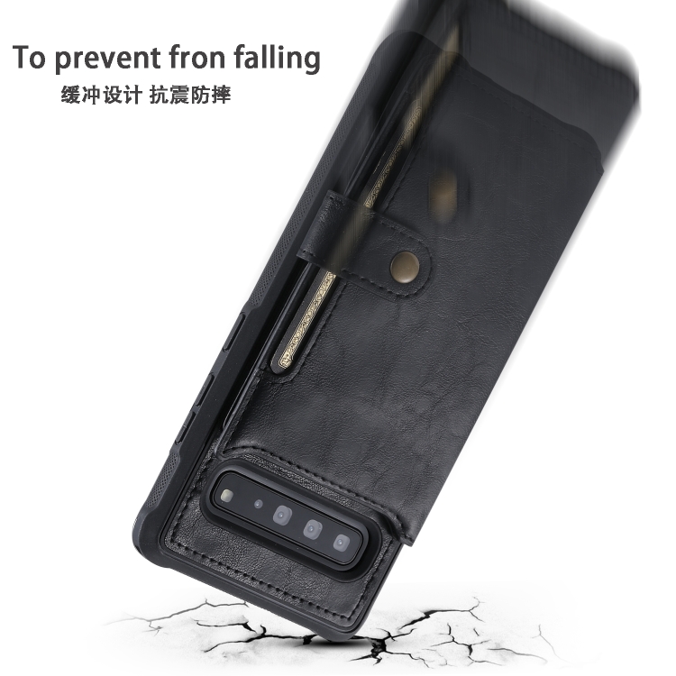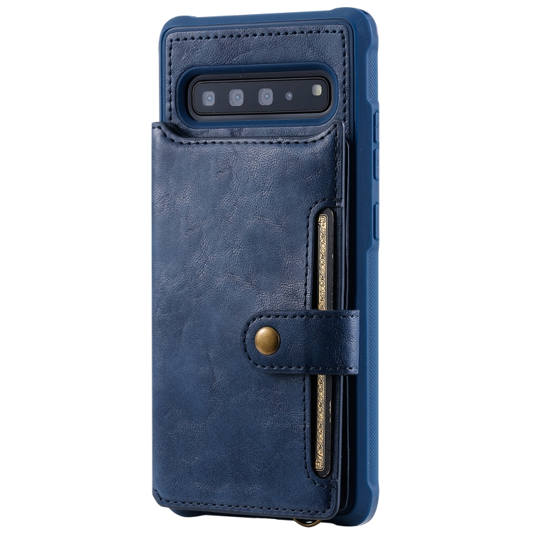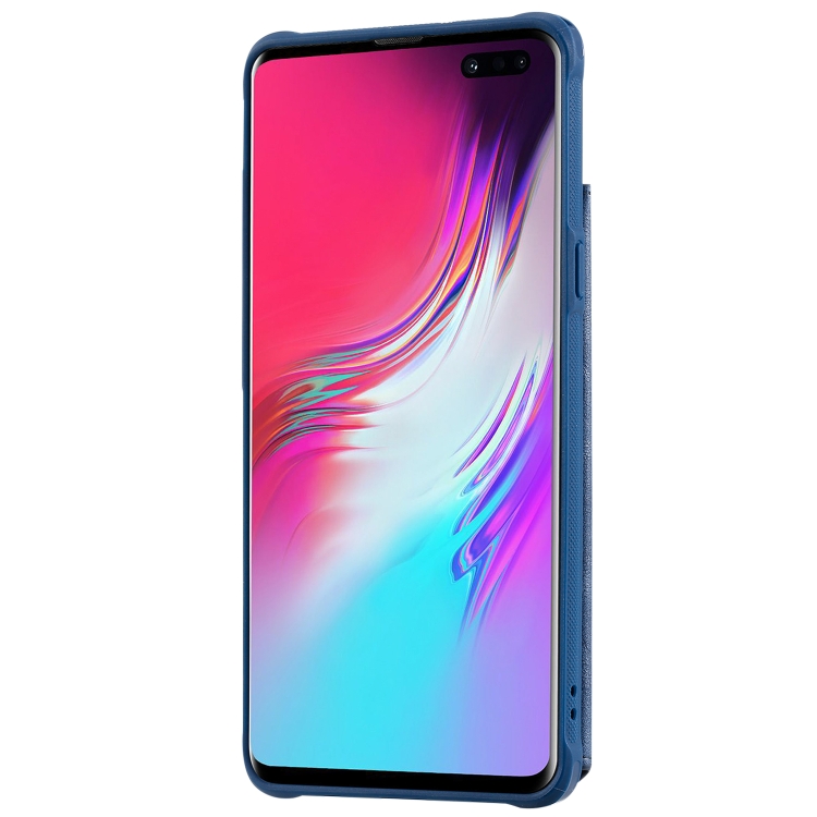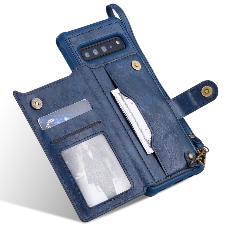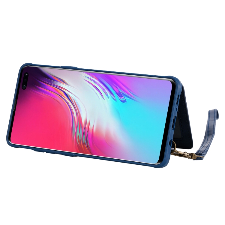 Estuche Protector Galaxy S10 5G Cremallera Hebilla Soporte Ranuras Tarjetas Billetera Cordón Marco Fotos (Azul)