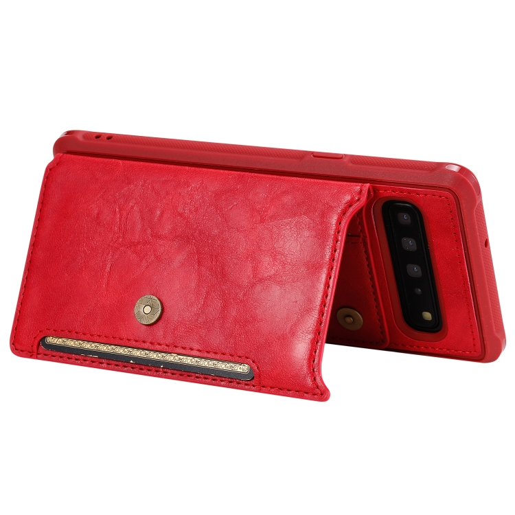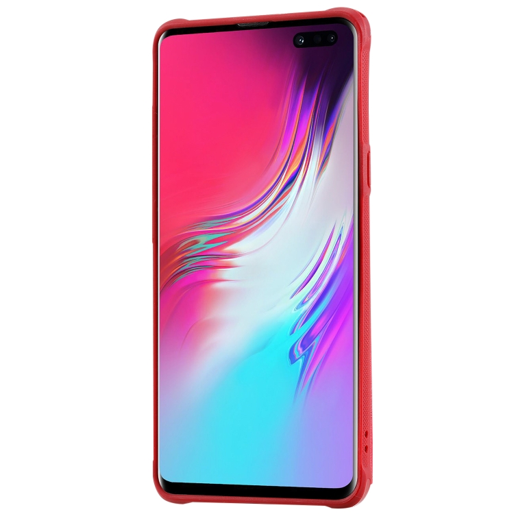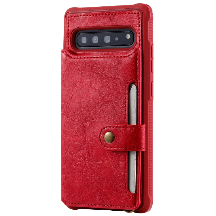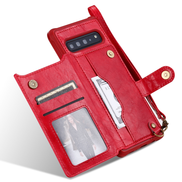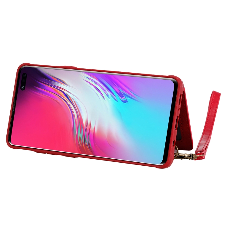 Estuche Protector Galaxy S10 5G con Cremallera Hebilla Soporte Ranuras Tarjetas Billetera Cordón Marco Fotos (Rojo)