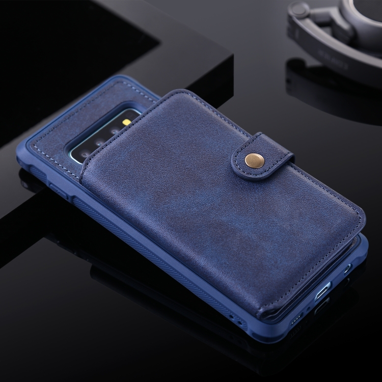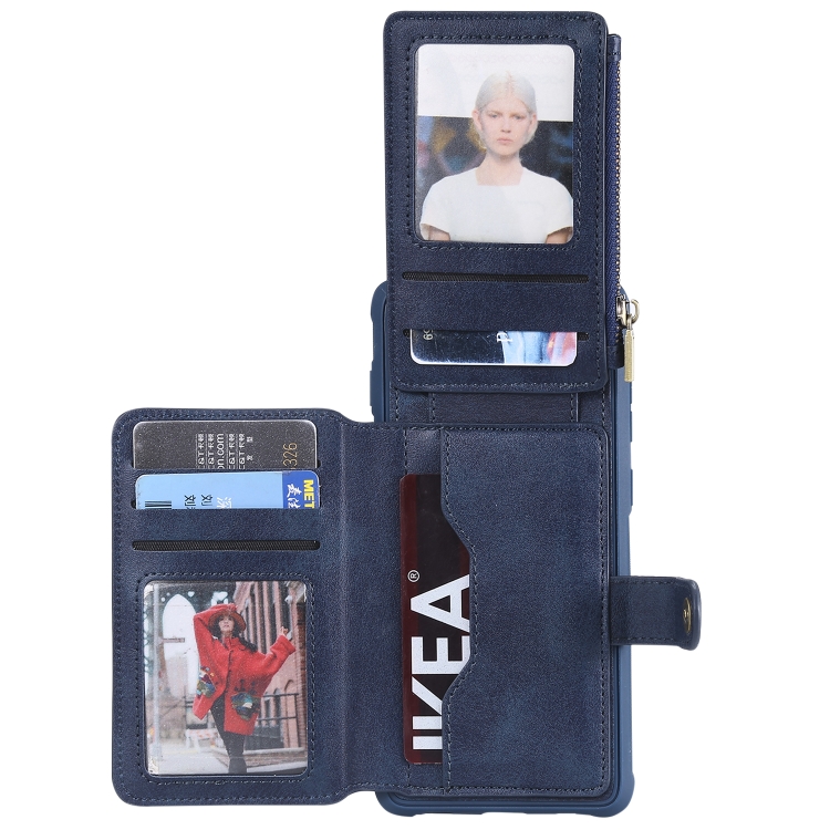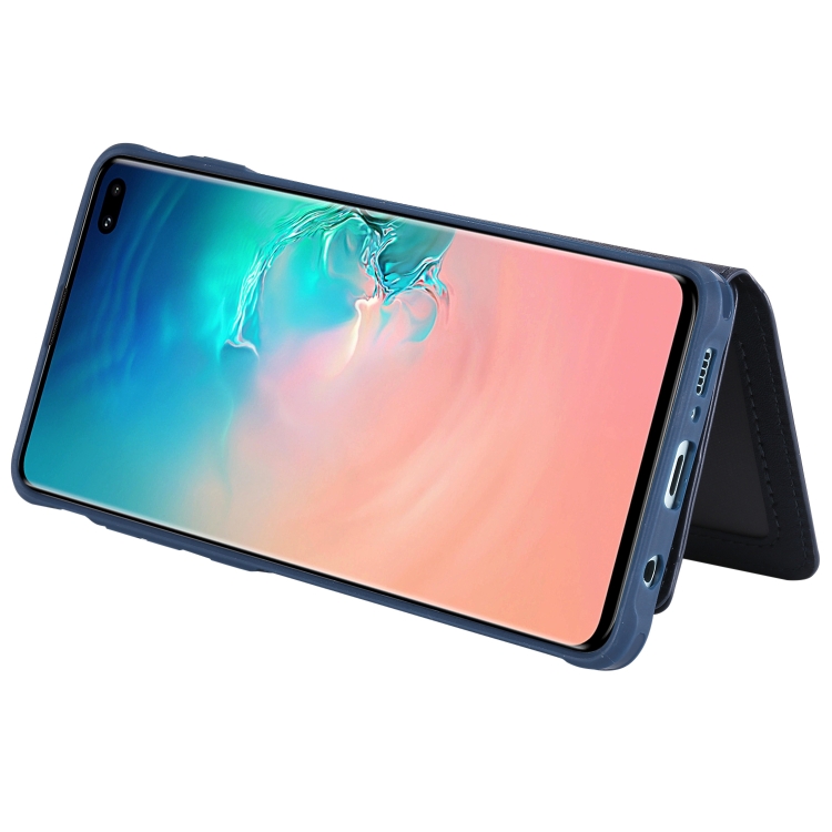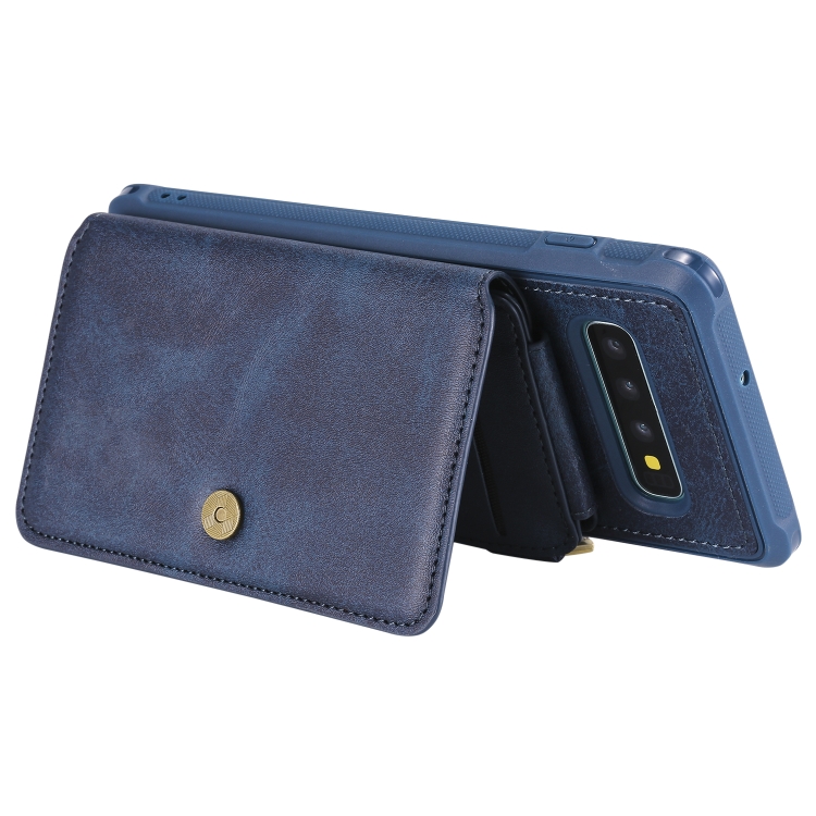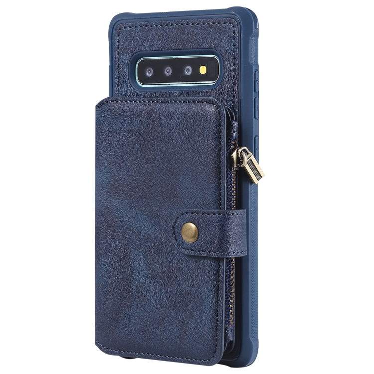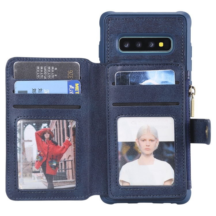 Estuche Protector Galaxy S10 Plus con Cremallera Ranuras para Tarjetas Soporte y Billetera (Azul)