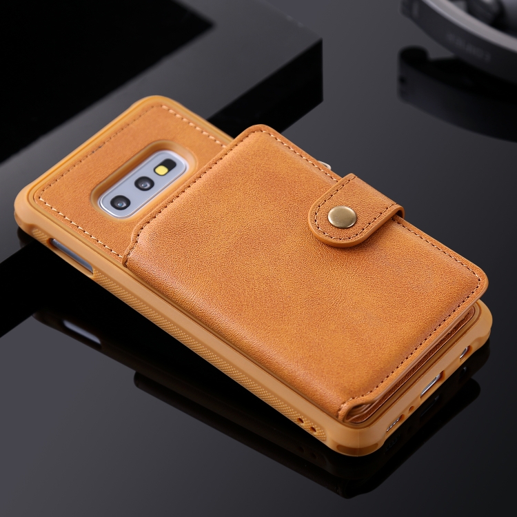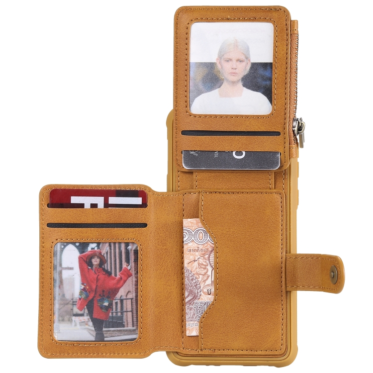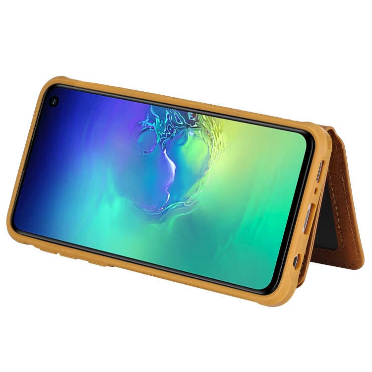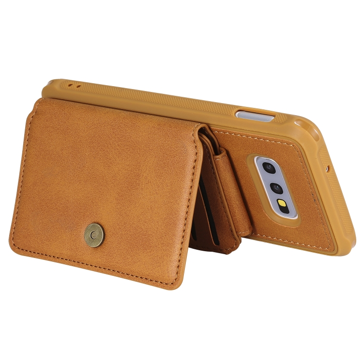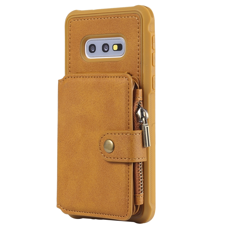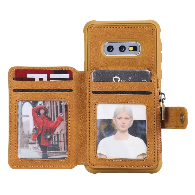 Estuche Protector Galaxy S10E con Cremallera Ranuras Tarjetas Soporte Fotos Billetera (Marrón)
