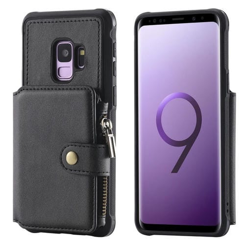 Estuche Protector Galaxy S9 con Cremallera Ranuras para Tarjetas Soporte Fotos Billetera (Negro)