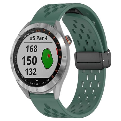 Correa de Silicona para Garmin Approach S40 con Cierre Magnético Plegable de 20mm (Verde Oscuro)