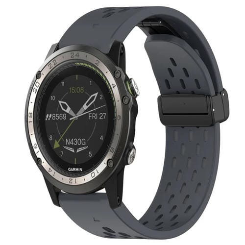Correa de Silicona para Garmin D2 Charlie con Orificio y Hebilla Plegable 26mm (Gris Oscuro)