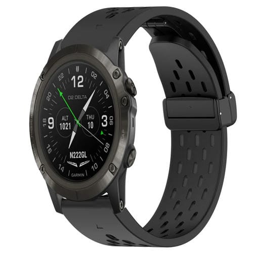 Correa de Silicona para Garmin D2 Delta Px con Orificio y Hebilla Plegable 26mm (Negro)