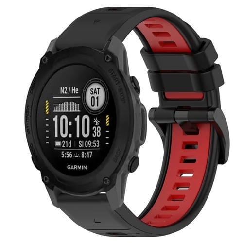 Correa de Silicona Two-Color 22mm para Garmin Descent G1 Sports (Negro + Rojo)
