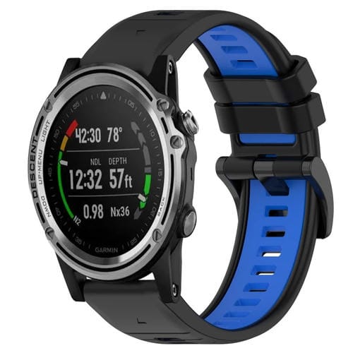 Correa de Silicona para Garmin Descent Mk 1 26mm Sports Dos Colores (Negro + Azul)