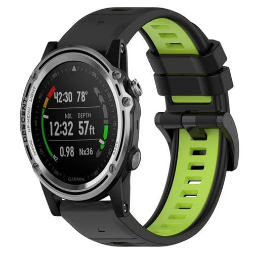 Correa de Silicona Sports para Garmin Descent Mk 1 26mm (Negro + Verde Lima)