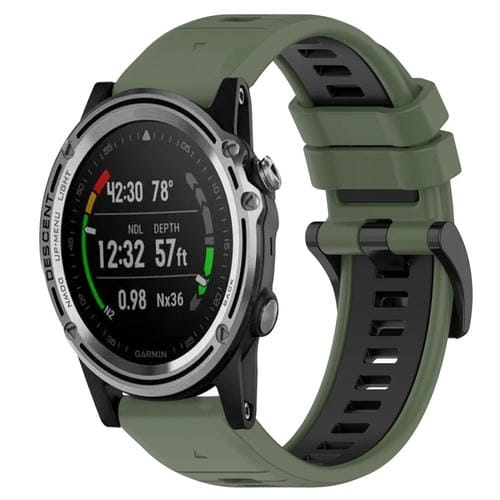 Correa silicona deportiva Garmin Descent Mk 1 26mm dos colores (Verde oliva + Negro)