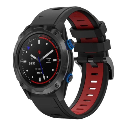 Banda de Reloj de Silicona para Garmin Descent Mk 2I 26mm Deportiva Dos Colores (Negro + Rojo)