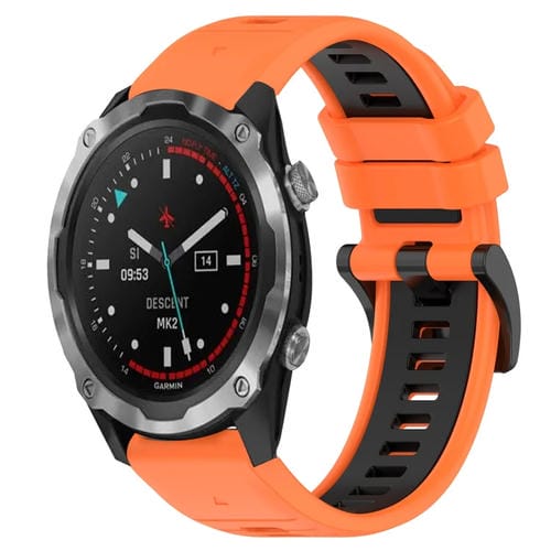 Para Garmin Descent Mk 2I 26mm Sports Two-Color Silicone Watch Band (Naranja + Negro)