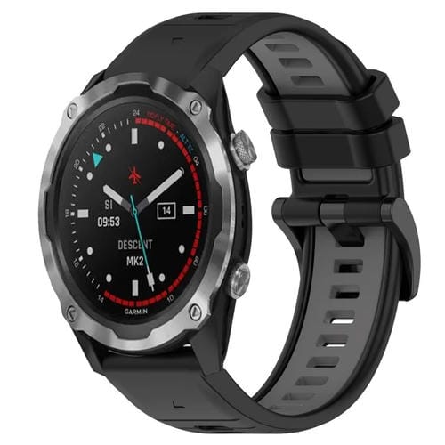Correa de Silicona para Garmin Descent Mk 2I 26mm Sports Dos Colores (Negro + Gris)