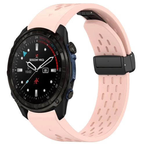 Correa de Reloj silicona Garmin Descent Mk3I Mk3 51mm 26mm orificios hebilla magnética (Rosa)