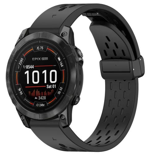 Correa de Silicona para Garmin Epix Pro 47mm 22mm con Hebilla Plegable Magnética (Negro)